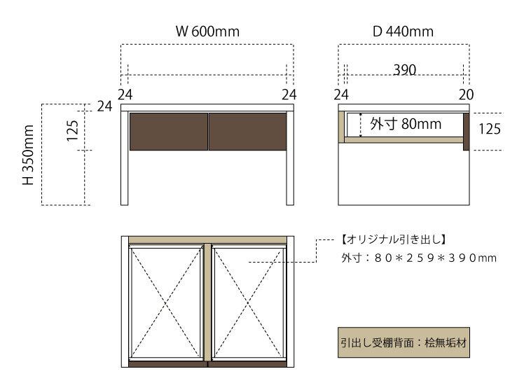 ・引き出しオリジナルサイズ:外寸:80*259*390を2杯