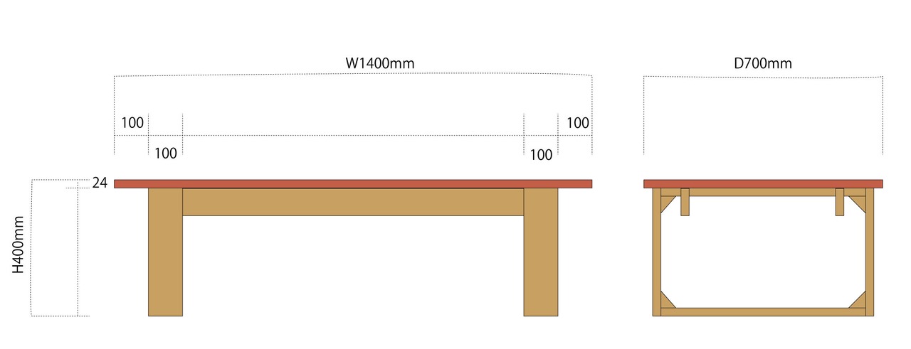 素 材:天板:ブラックチェリー無垢材|脚:桧無垢材
