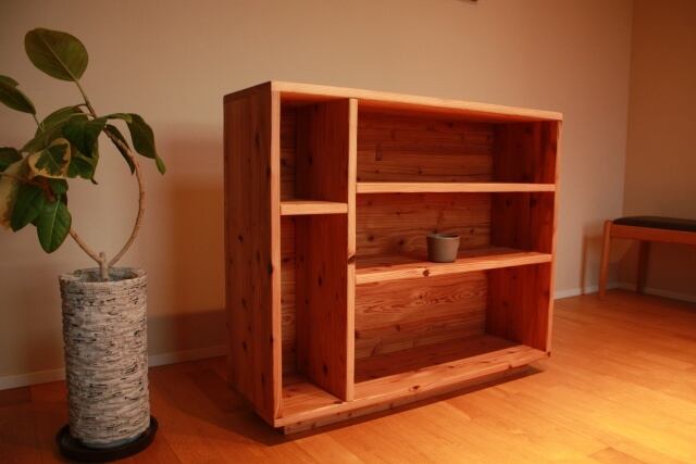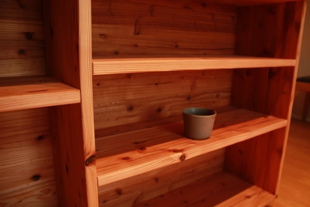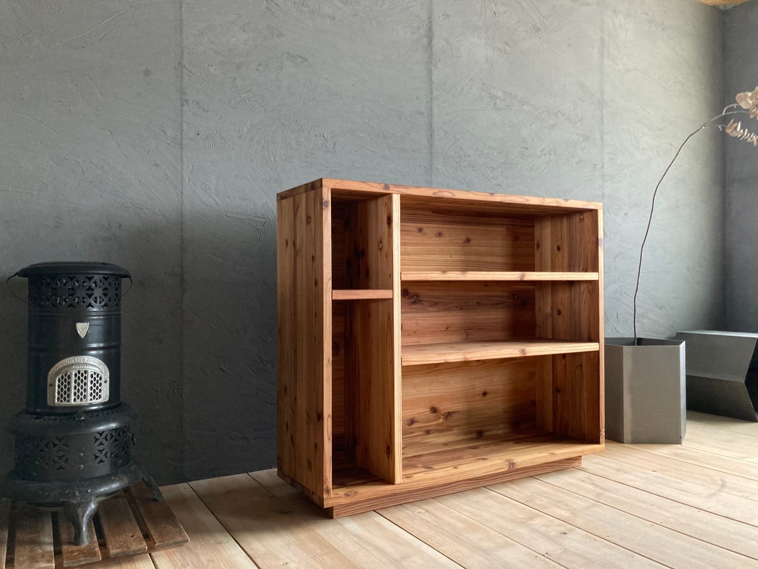 温かみのある「杉巾接ぎ無垢材」を使用した棚|シェルフ