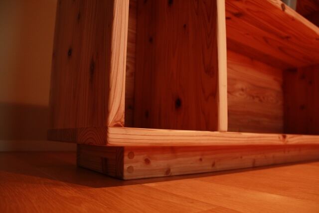 本業で出る杉巾接ぎ無垢材の端材で作成しますので、天然木・無垢材を使用しながらも素材単価を落として作成させていただいております。