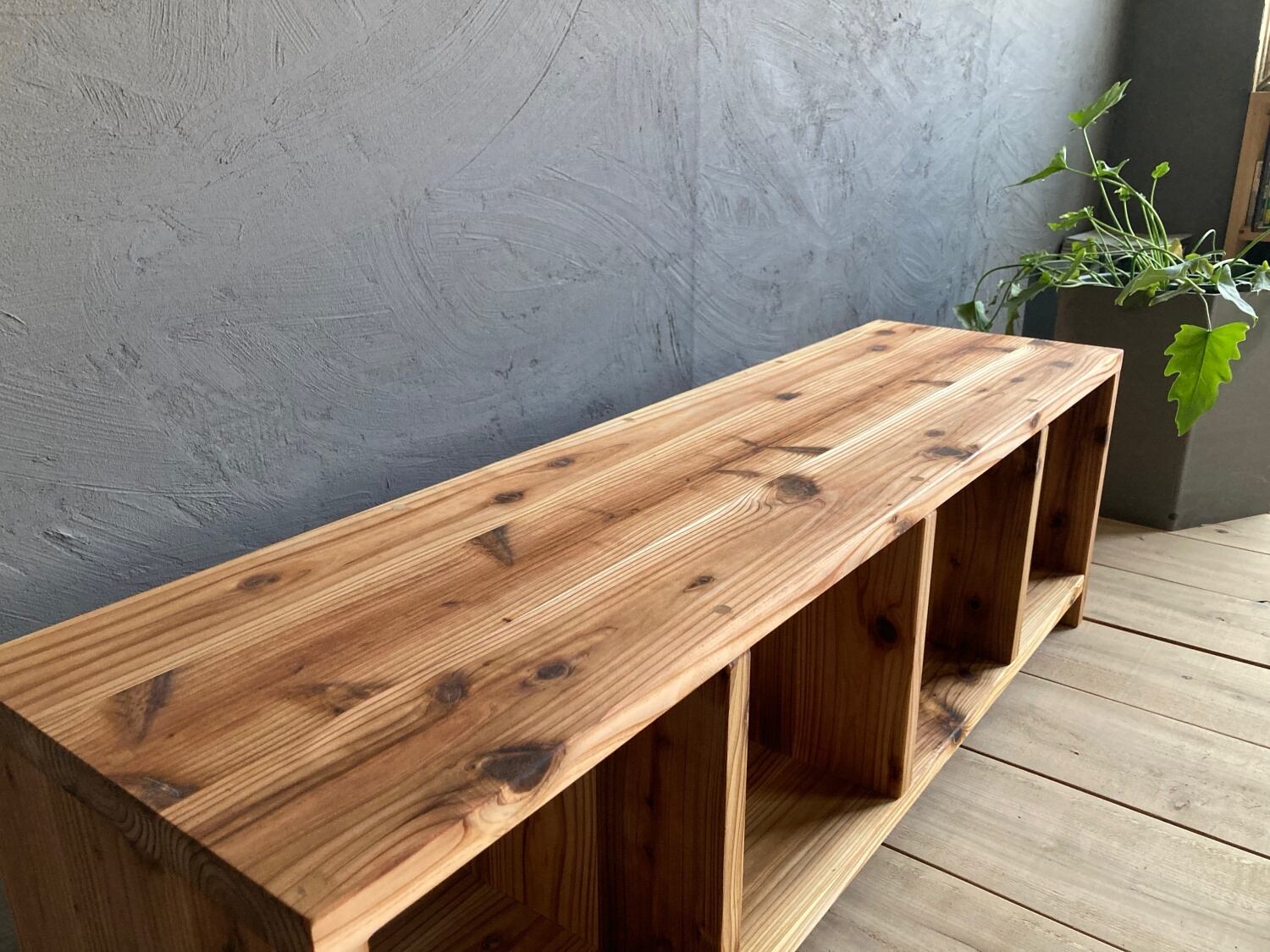 温かみのある「杉巾接ぎ無垢材」で作成したシンプルな多目的シェルフ