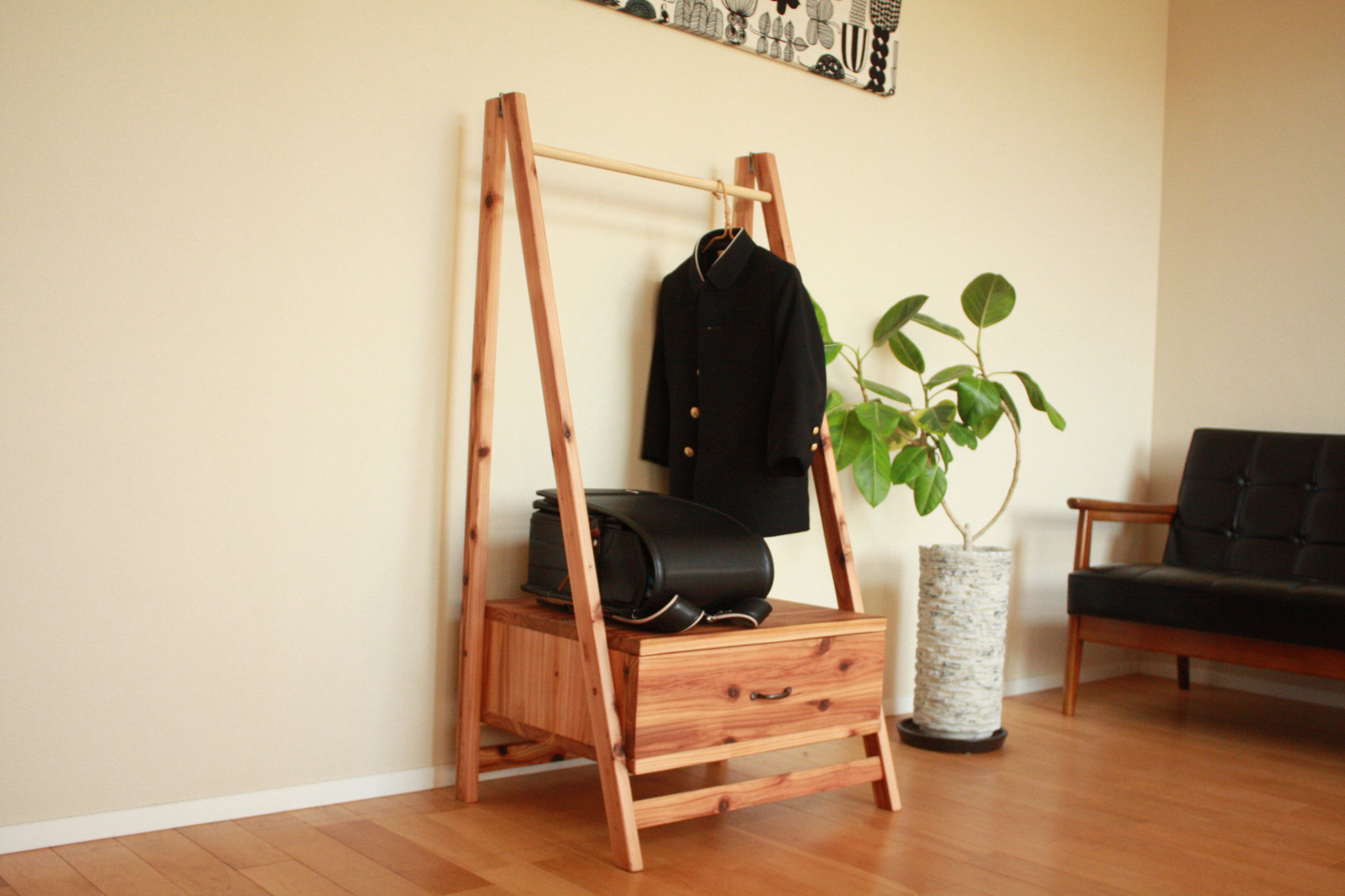 暖かな無垢材のハンガーラック | ランドセルラック | イベント什器