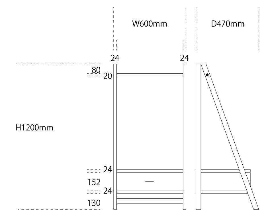 引き出し箱の下部に切り込みを入れておりますので、ハンガー本体の下丸棒に乗せて組み立て完了です。必要な場合はネジ穴を設けておりますので、ネジ留めしてご使用ください。
