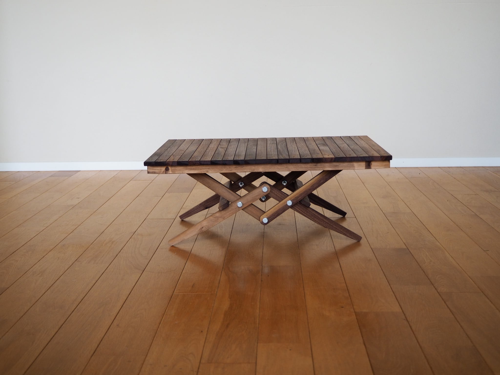 折りたたみ式の脚に、天板を乗せるだけの構造ですので、リビングで使用はもちろんですが、キャンプやピクニックなどのアウトドアでの持ち出しテーブルとして使用してもサイトの雰囲気を一段と上質なものに。