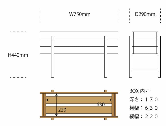 深さ170 横幅630 縦幅220