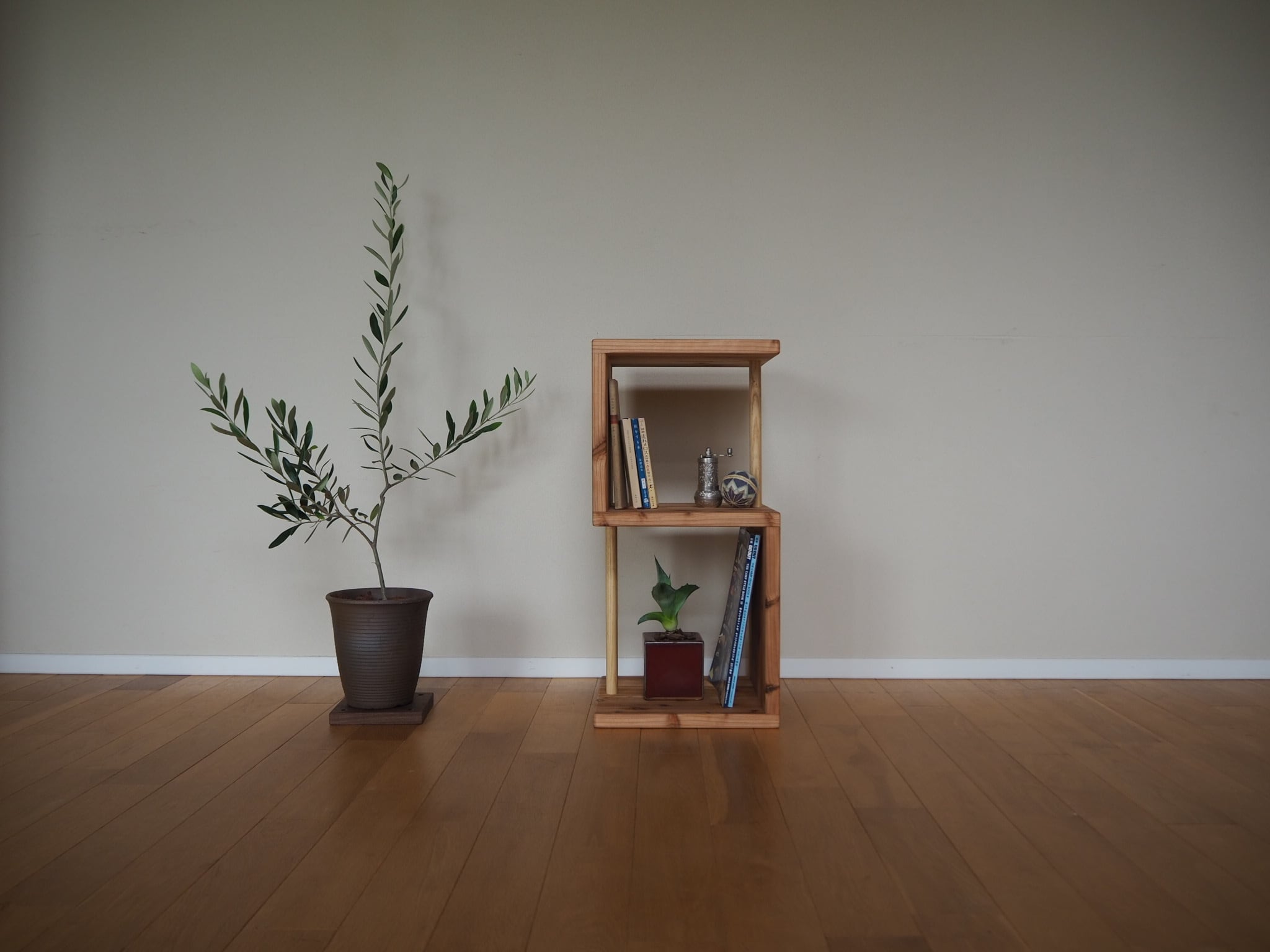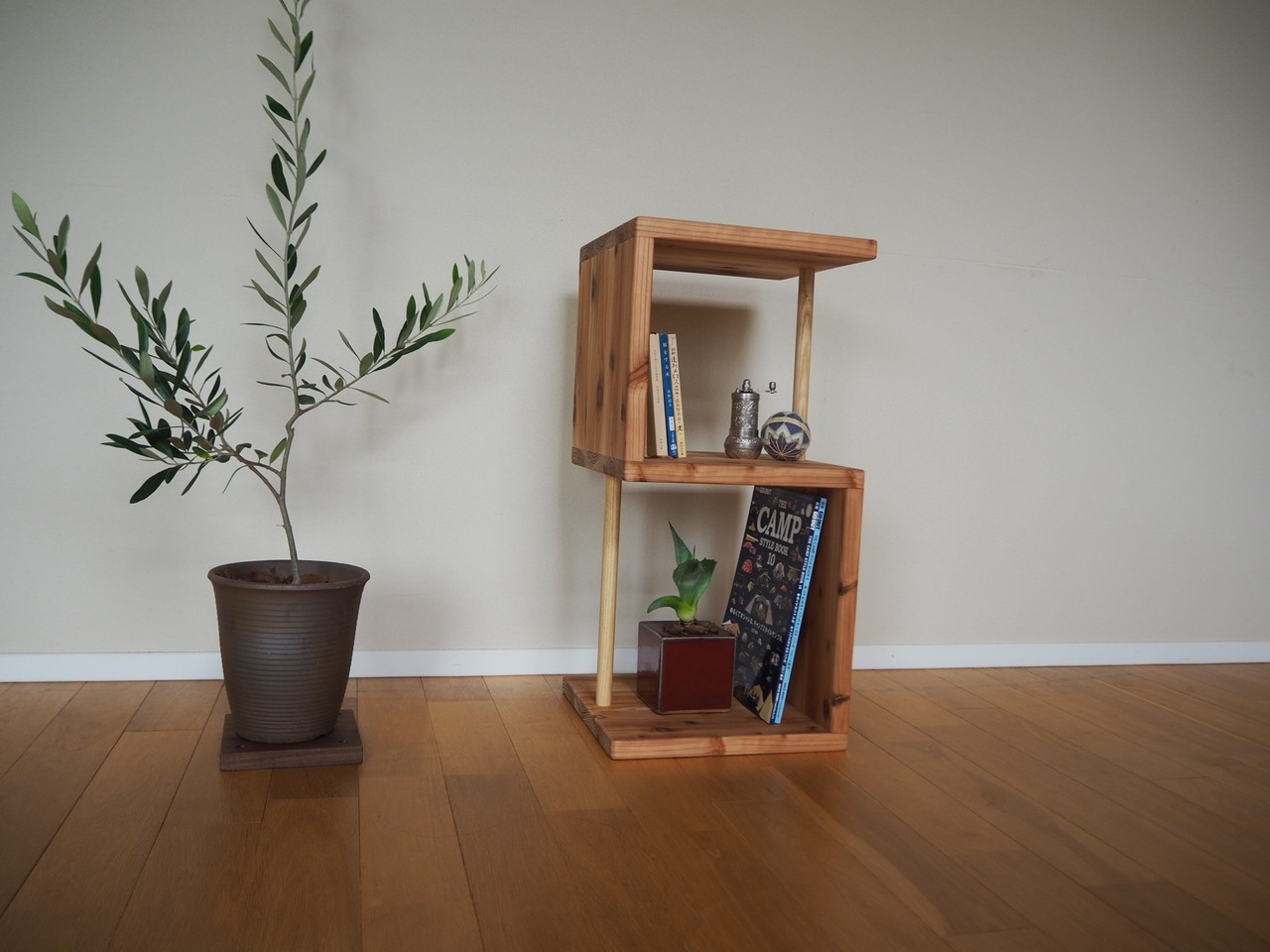 暖かみのある杉の無垢材で作成した飾り棚|本棚