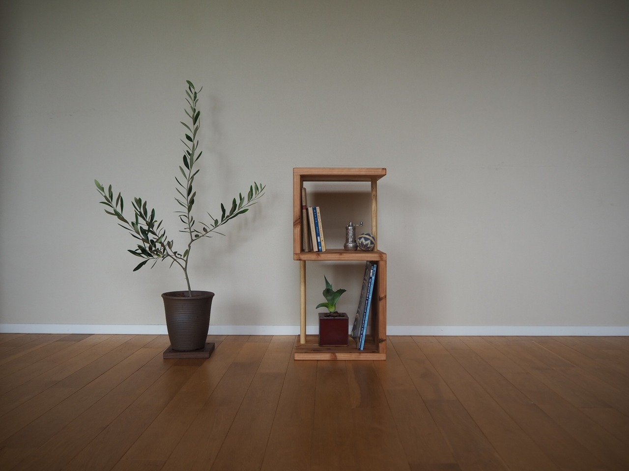 杉無垢材のS字飾り棚 | 本棚