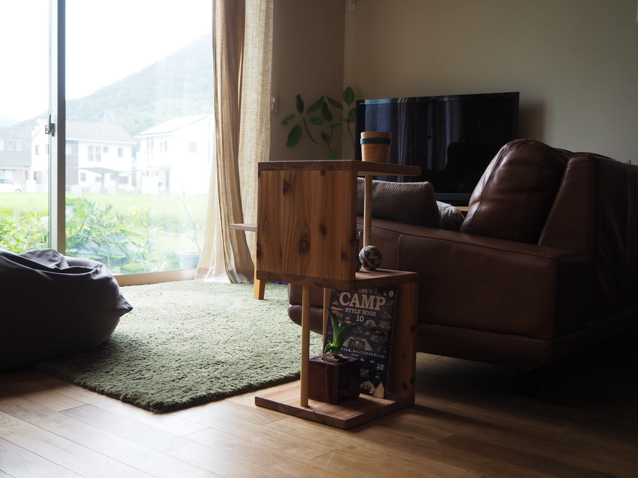 木材の中では軽い部類の杉材ですので移動も楽チンです。