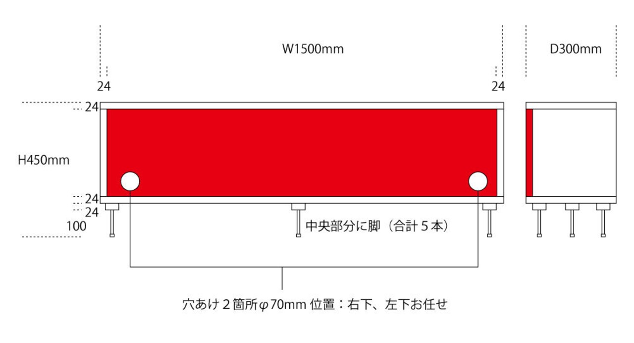 ・背面穴あけ加工:2箇所φ70mm(右下・左下お任せ)