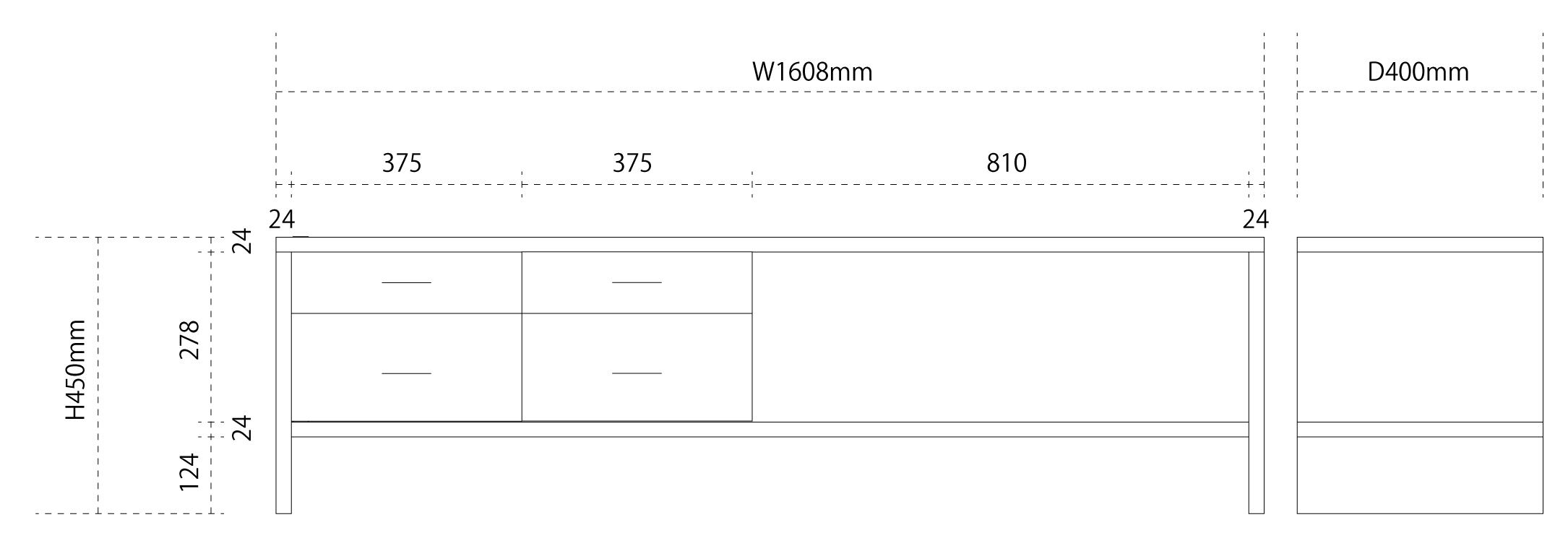 ・H450*W1608*D400mm