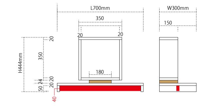 ・下台:高70mm(補強40mm)*横幅700mm*奥行300mm