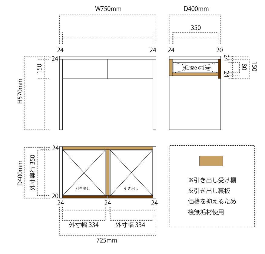 サイズ:高570 × 巾750 ×奥400mm