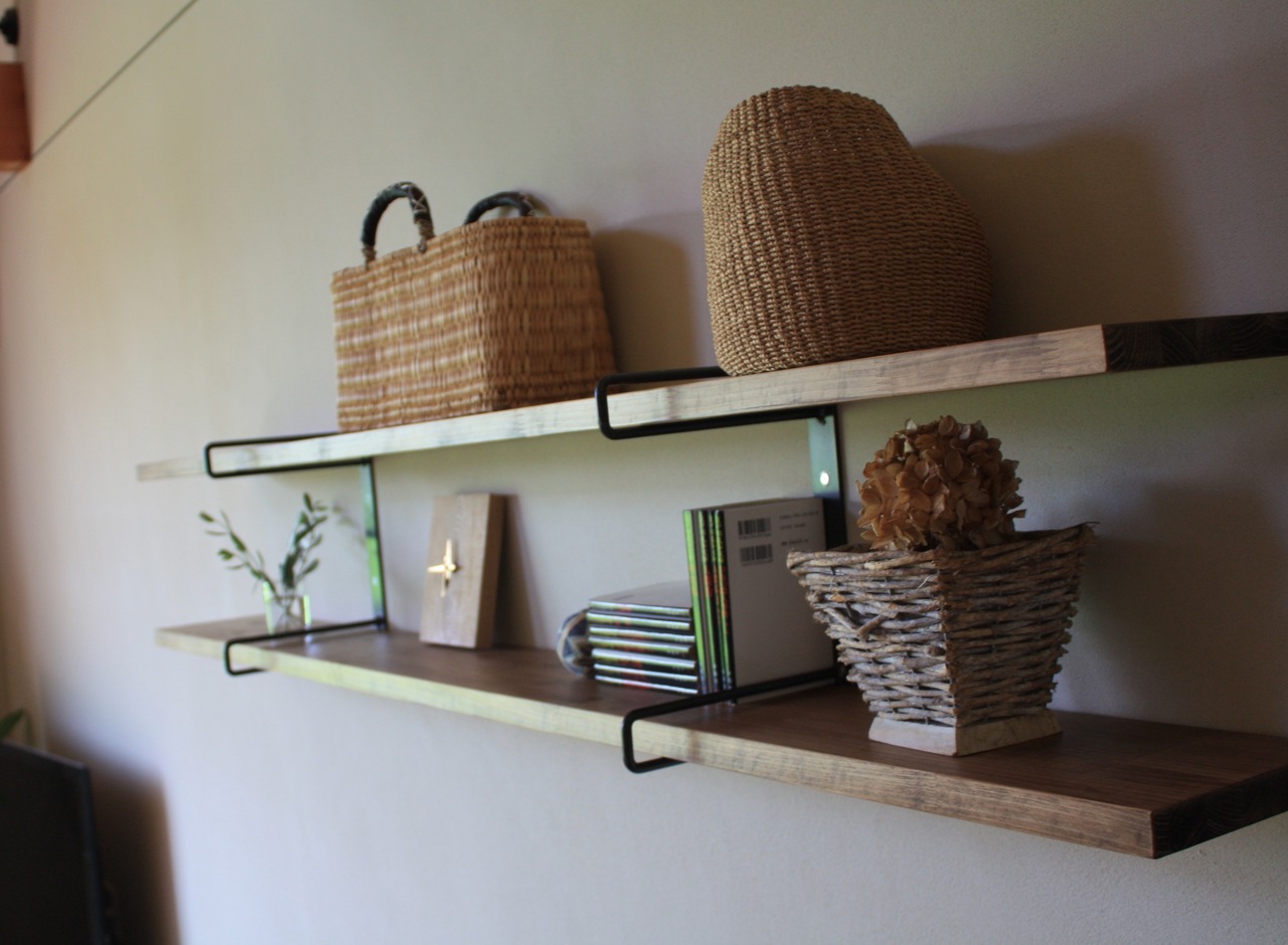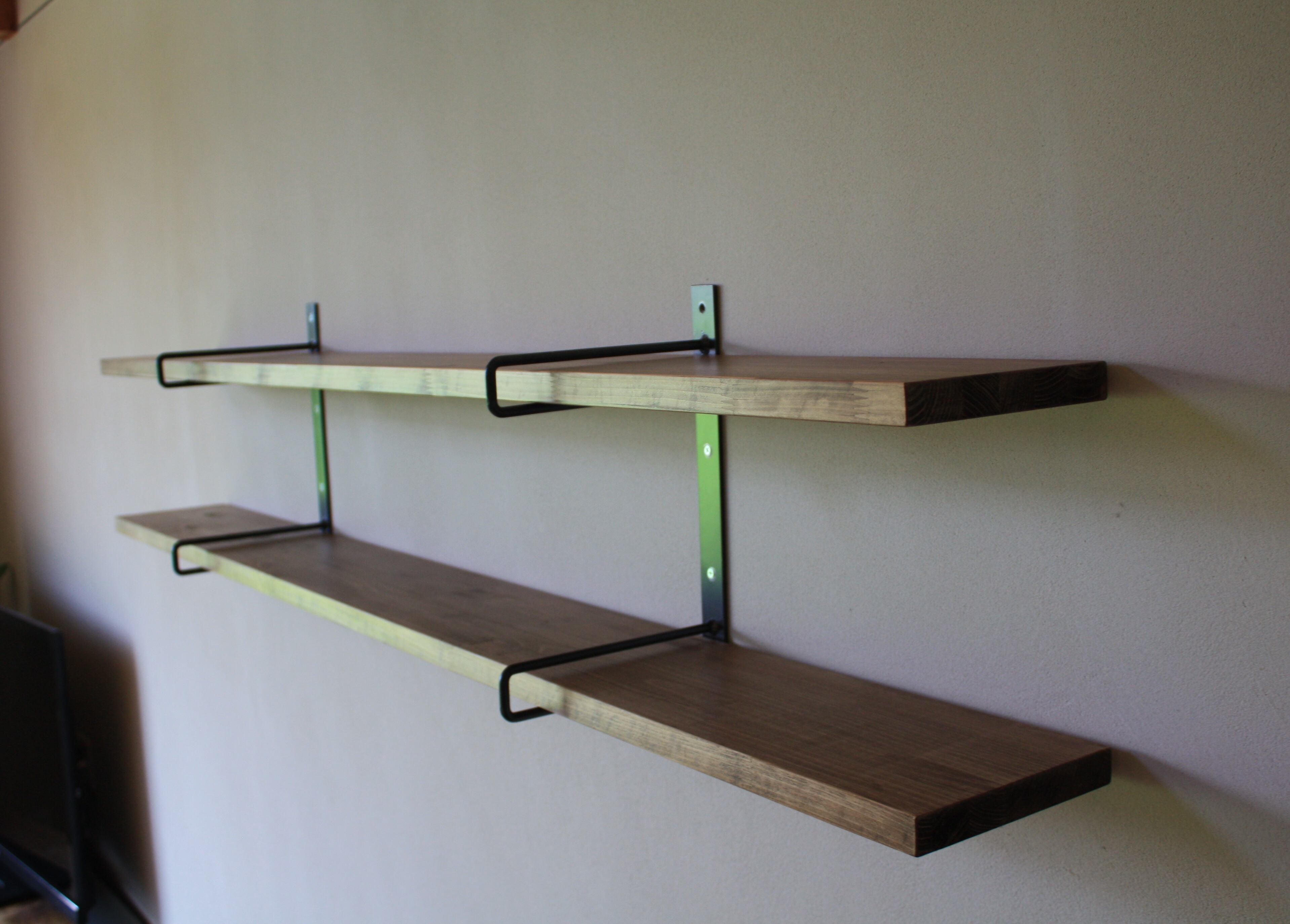 シンプルスマートなアイアン「W棚受け」と色・サイズが選べる「棚板」セット
