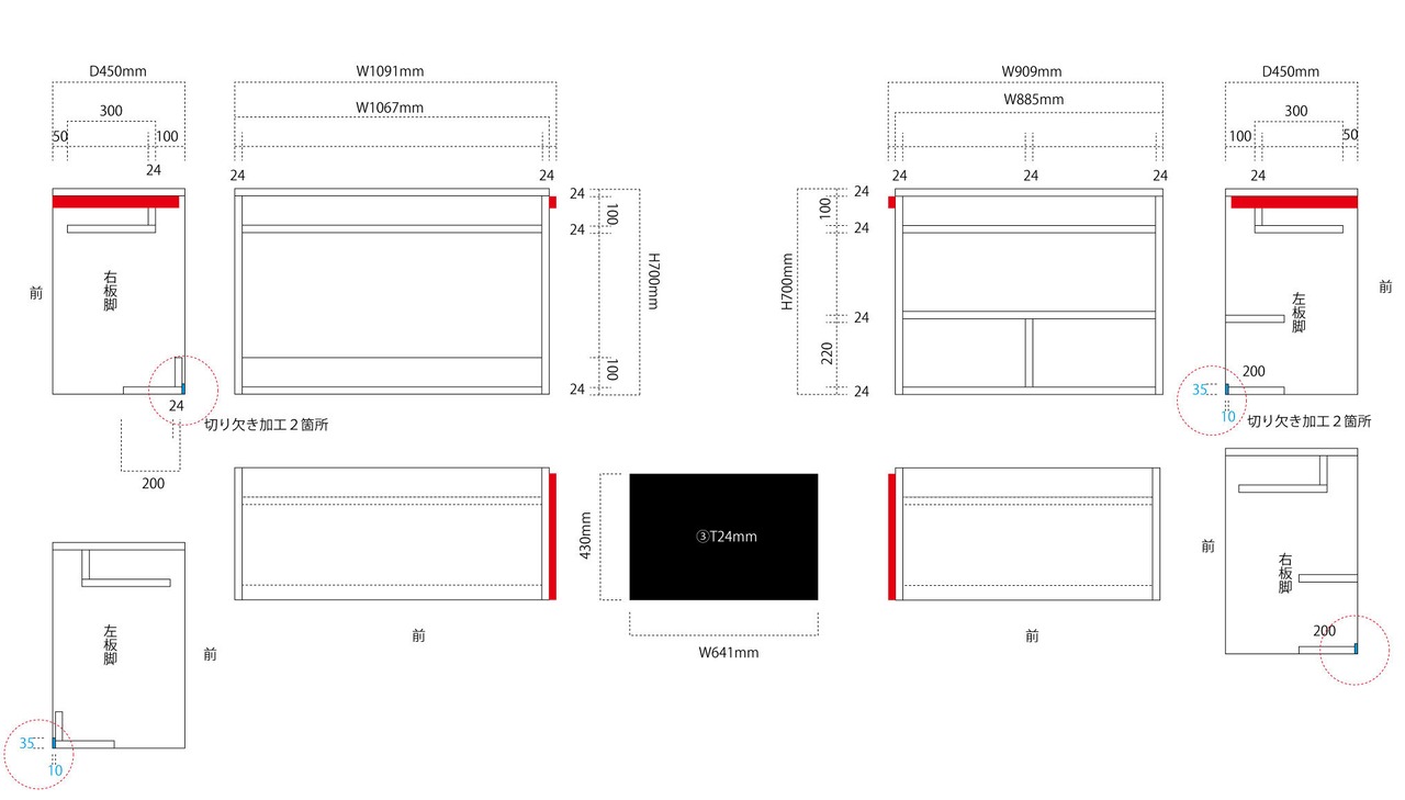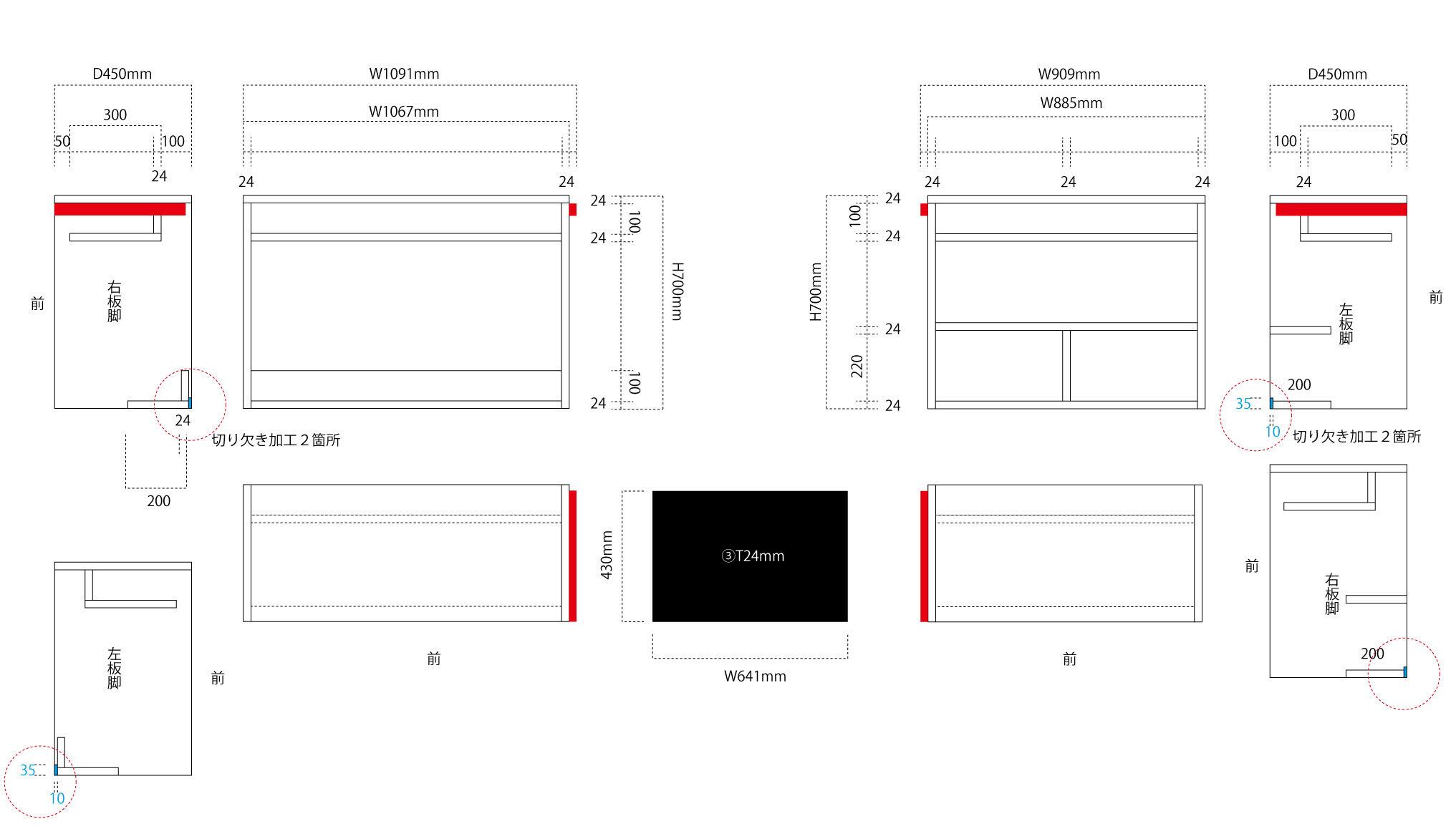 ・向かって右側に③を乗せる横桟の取り付け(T24*40*430mm)