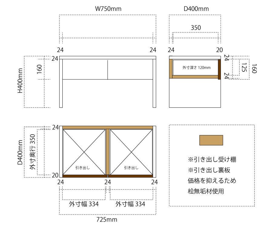 ・引き出し受板|背板:桧無垢材