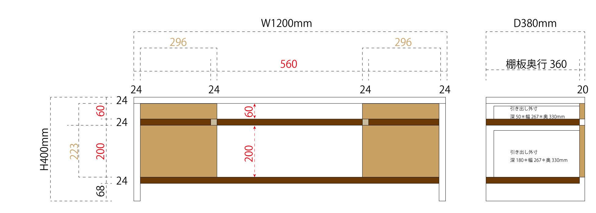 ・オリジナル引き出し作成:引き出し前面幅296mm)
