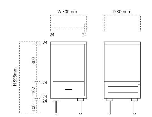 ・H598(上棚有効:300mm)*W300*D300mm